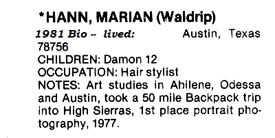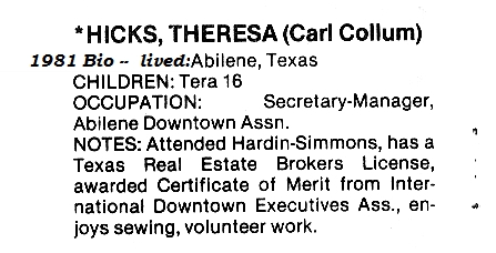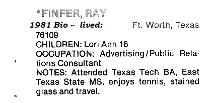 | FINFER, Ray | HANKINS - JOWERS - THOMPSON, Rita Jane | HICKS, Theresa |