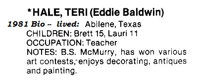 | HALE-BALDWIN, Teri | HERSHEY, Marvin | |