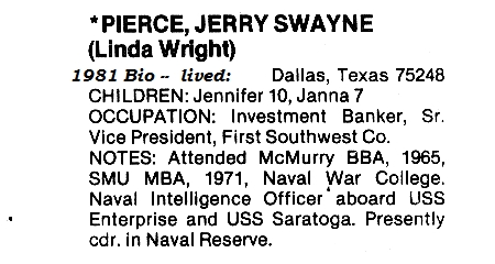 | Jerry Swayne PIERCE, | Dana TESSON | |