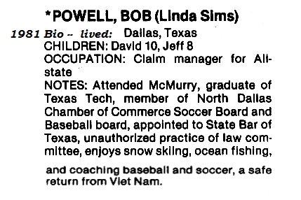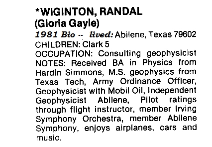 Crystal graduated AHS as an honor student and attended Texas Tech University in Lubbock, Texas. An AHS cheerleader, she married Michael Ed Bryant, a star Abilene High football player. Crystal retired as a public affairs manager from the Texas and Southwestern Cattle Raisers Association in 2005 after 20 years of outstanding service. Prior to that, she worked for Percival Tours, where she received an Addy Award for copywriting. She traveled the world during her career, including trips to Singapore, England and the Bahamas. Unfortunately she was lost to the world on November 6, 2013. |