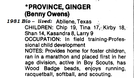 | Ginger PROVINCE | Jarry TIFFANY | Richard YOUNG |