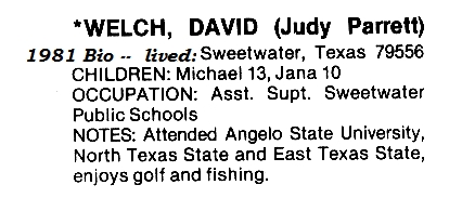 David Welch, superintendent of the Sweetwater Independent School District for nine years, has submitted his resignation, effective the end of the current school year, May 31, 1998. David was elected Mayor of Sweetwater in 2004 and served until 2008.
