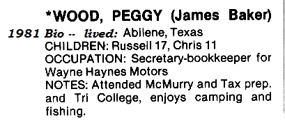 Our address was 1926 South 19th. Evidently Abilene wasn't prepared for all the "war babies" so the schools were overcrowded when I started to 1st grade. I went mornings only in 1st grade at Alta Vista and in 2nd grade I was an afternoon student. My husband says we were the Alta Vista Roosters but I don't remember that. He was a year and a grade older and was in the old building. First and second graders were in the new building and really didn't take part in much since we only went half a day. When I went to third grade Bowie Elementary was finished so I became a Bowie Bobcat. Carol Ann Little lived 3 houses down across the alley. Her parents owned the wrestling arena in Abilene. Sometimes I would go over to her house and help her fold, address, and stamp the wrestling circulars they sent to their regular customers. They had a little travel trailer in the back, and sometimes we spent the night in it.