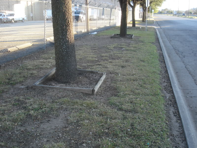 The trees (complete with planters) are a nice touch for a street with no sidewalks...