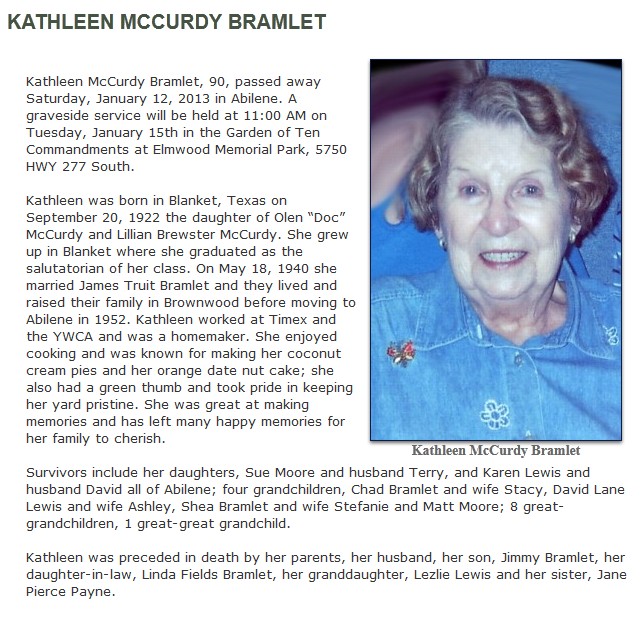 Burial to be at: Elmwood Memorial Park, Abilene, TX.