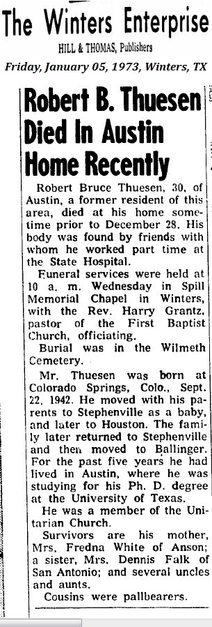 Thuesen, Robert "Bruce" [22 Sep 1942 - Ca 28 Dec 1973]
