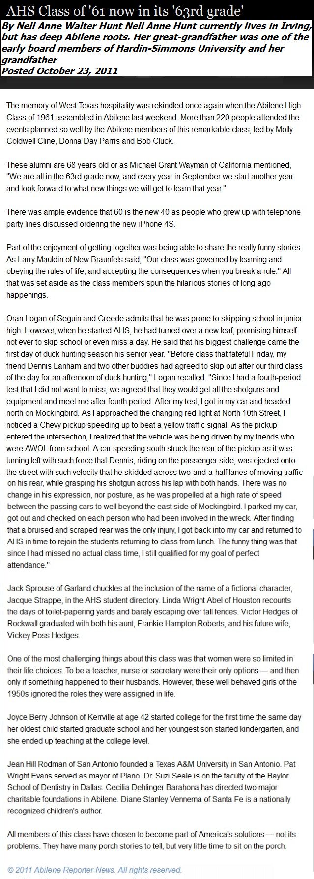 ~~~~~~~~~~~~~~~~Eaglet News~~~~~~~~~~~~~~~~Junior Eagles AHS Class of 1961 |